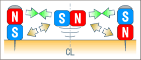 両サイドの磁石を固定して真ん中にもう一つ磁石を置きます